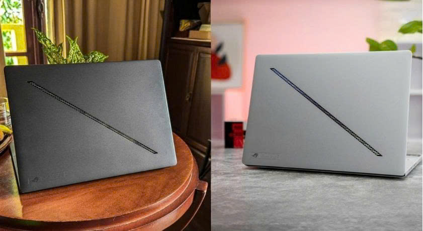 Sự khác biệt khó nhận ra nằm ở mặt đáy: ASUS mở rộng khe gió, sắp xếp lại luồng khí để phục vụ hệ thống tản nhiệt mới. Dải LED Slash thay thế cho AniMe Matrix LED đã quen thuộc, ít màu mè hơn nhưng mang phong cách “tối giản cao cấp”.