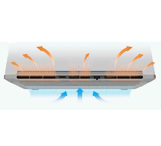Hệ thống tản nhiệt mới với khe thoát khí đặt phía sau (rear vent) thay vì hai bên như trước → giảm nóng bàn phím và lòng bàn tay rõ rệt. Lenovo tối ưu tốt hơn cho CPU AMD H-series